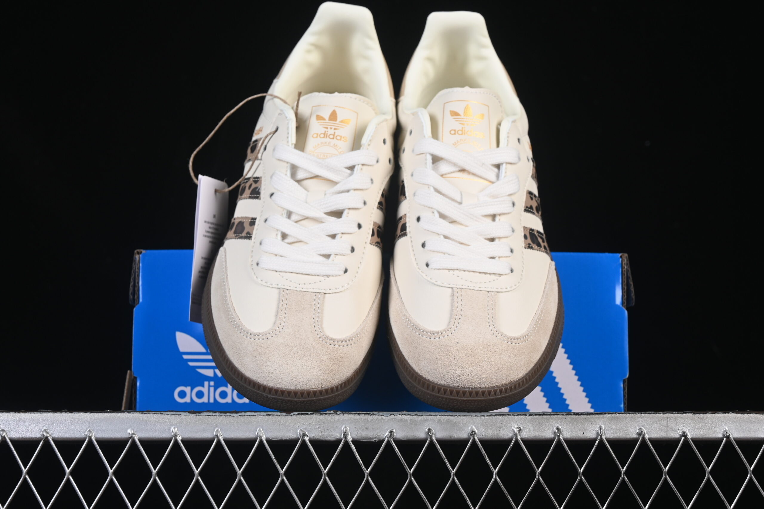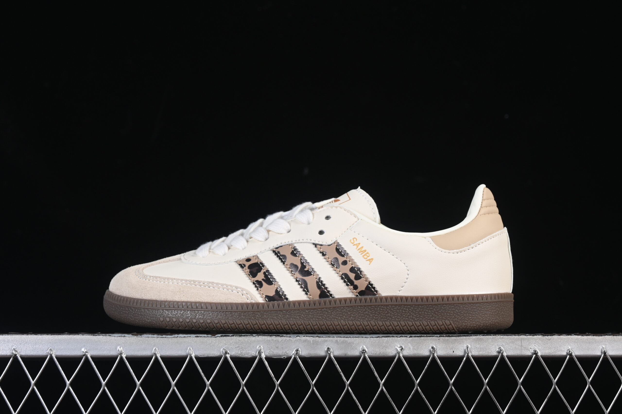 Stand out in sophistication with this beige sneaker featuring bold leopard-print stripes.