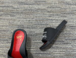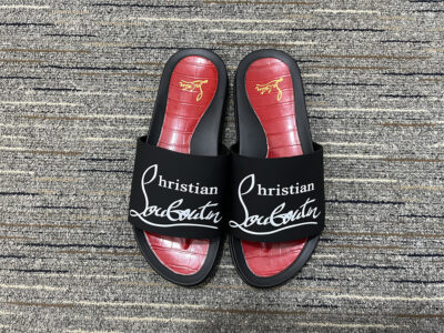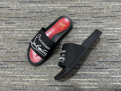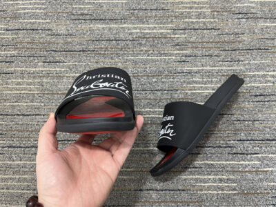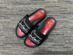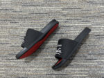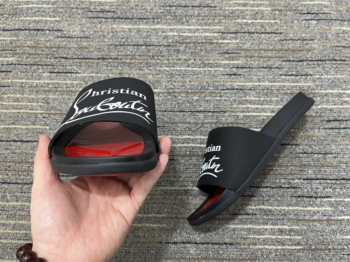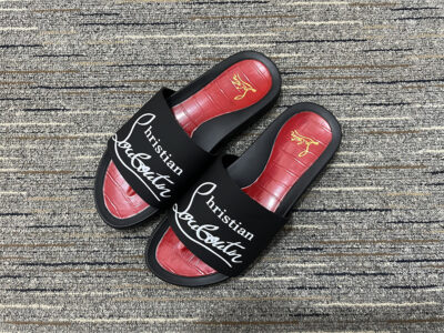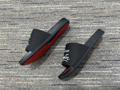 Redefine your off-duty style with these black and red luxury slides.