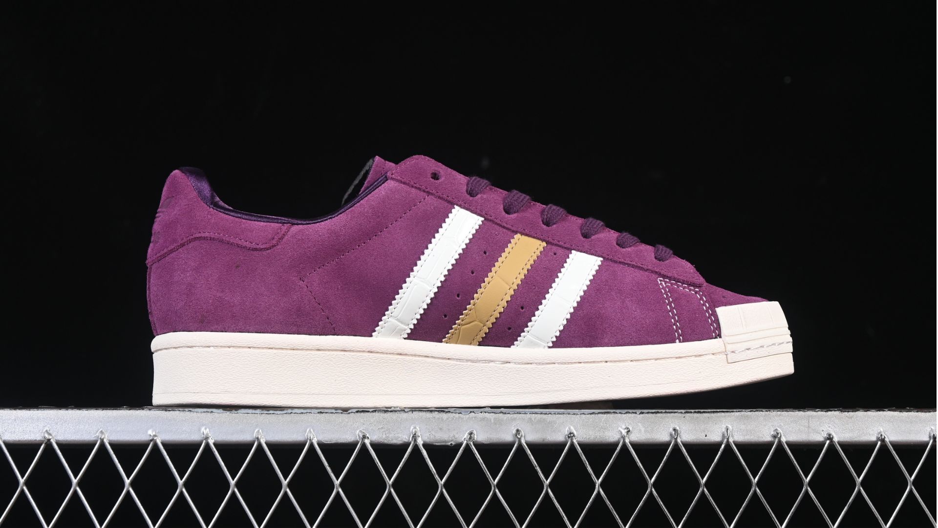 You can purchase the purple sneaker with gold stripes from our